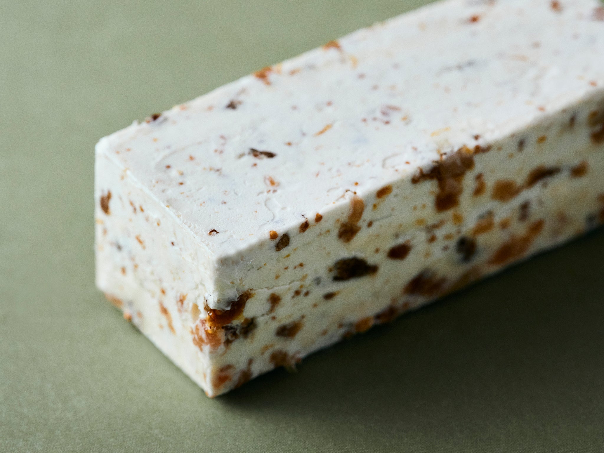オーガニックのドライいちじくをラム酒でマリネし、軽やかなバタークリームと合わせました。いちじくの芳醇な香りとラムのリッチな甘みが、北海道よつ葉乳業のすっきりとしたバターに溶けこみます。そのままでも、クラッカーやパンに添えても。ひと口ごとに、心までほどけるようなノエルの味わいを。ゆっくりとお酒と過ごすひとときに。