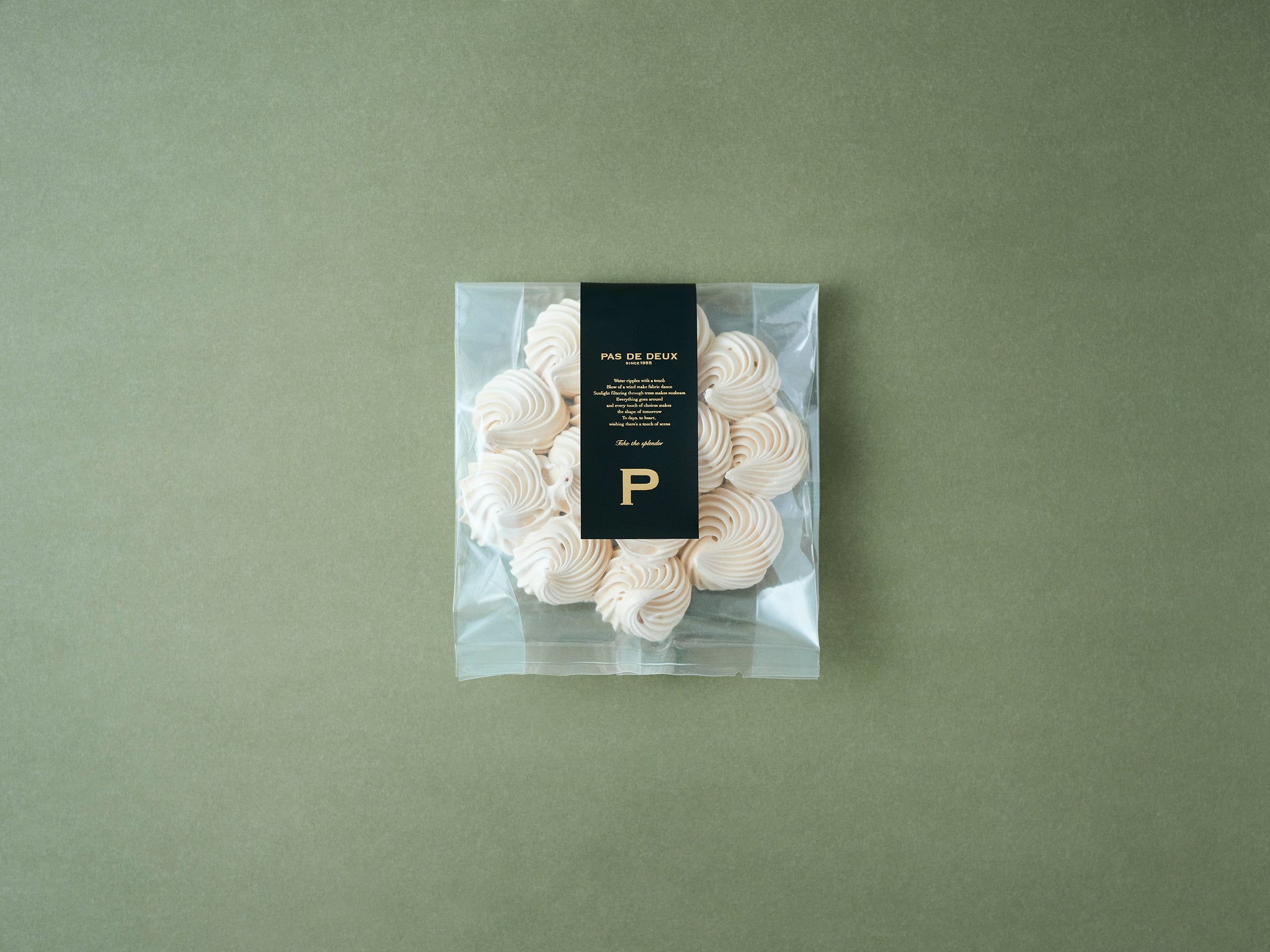 白い雪がかかったようなリース型のメレンゲは、ラム酒をほんのり効かせて焼き上げた華やかな甘さ。口の中でふんわりほどける、繊細な食感をお楽しみいただけます。シンプルで上品なメレンゲは、大人のクリスマスギフトにぴったりです。
