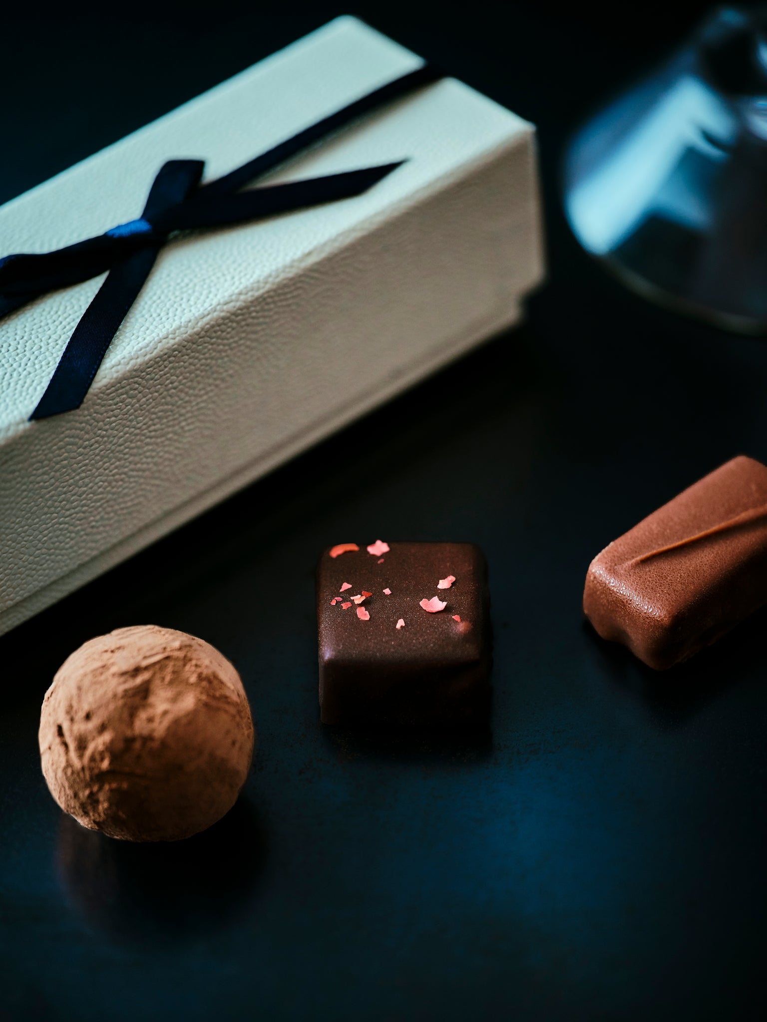 パドゥドゥでは、カカオの濃度とガナッシュの配合を基準に、香りがどの順番で立ち上がり、どこに余韻が残るかを見極めながら、三種のトリュフを仕立てました。